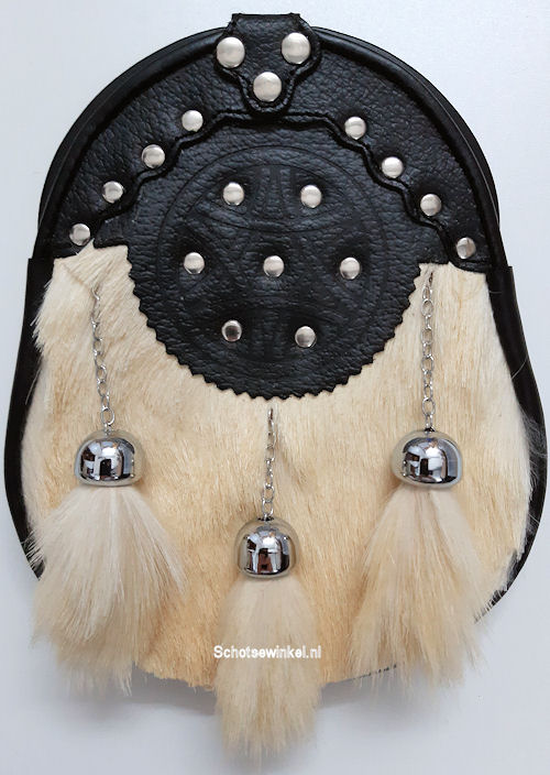 Sporran, Zwart, leer, celtic, pin, 3 tassels